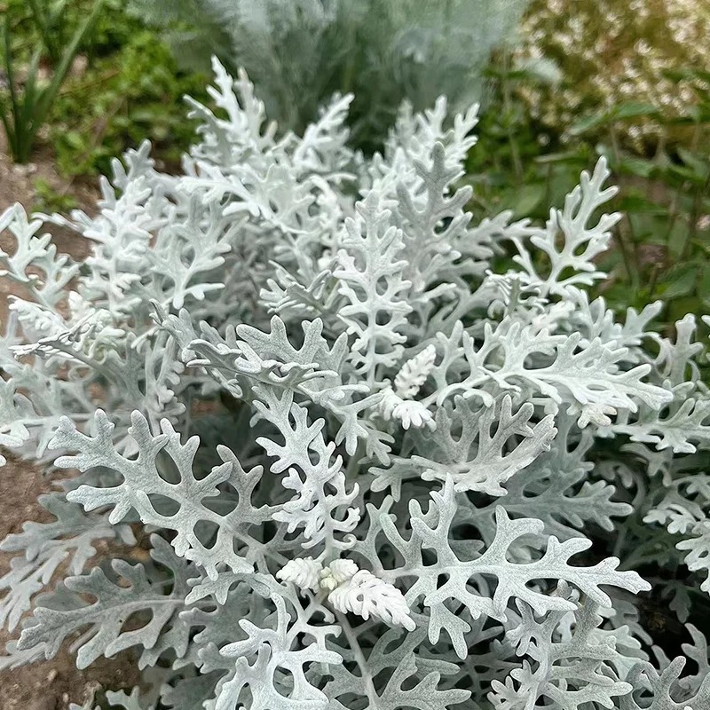 ✨ Striking Silver Foliage: Dusty Miller is best known for its stunning silvery-gray leaves that bring a unique, ethereal quality to any garden. 🌱 The foliage is soft to the touch, with finely cut, lace-like edges that create a delicate yet bold visual appeal. ✨ This silver color serves as a perfect backdrop to highlight more vibrant plants, adding depth and contrast to your garden design.