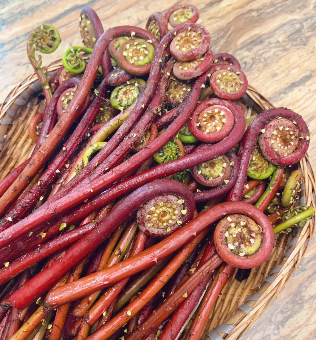 Known for their delicate spiral tips and vibrant red or green stems, these ferns are not only a visual delight but also a delicious, nutrient-rich addition to your meals.