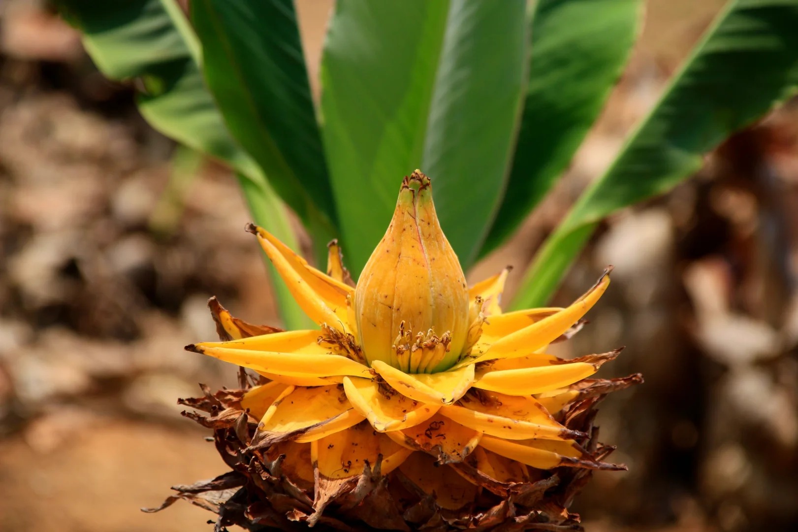 Golden Lotus Banana is a very characteristic ornamental plant in flower design, mostly planted in the centre of flower beds, beside rocks, in front of windows, wall corners, etc. It can also be planted before and after trees in courtyards. Its leaves are broad and erect, similar to banana, suitable for use as a landscape with the middle and back, and when in bloom, a golden lotus flower as if emerging from the ground, sacred and elegant, but also has a good meaning.