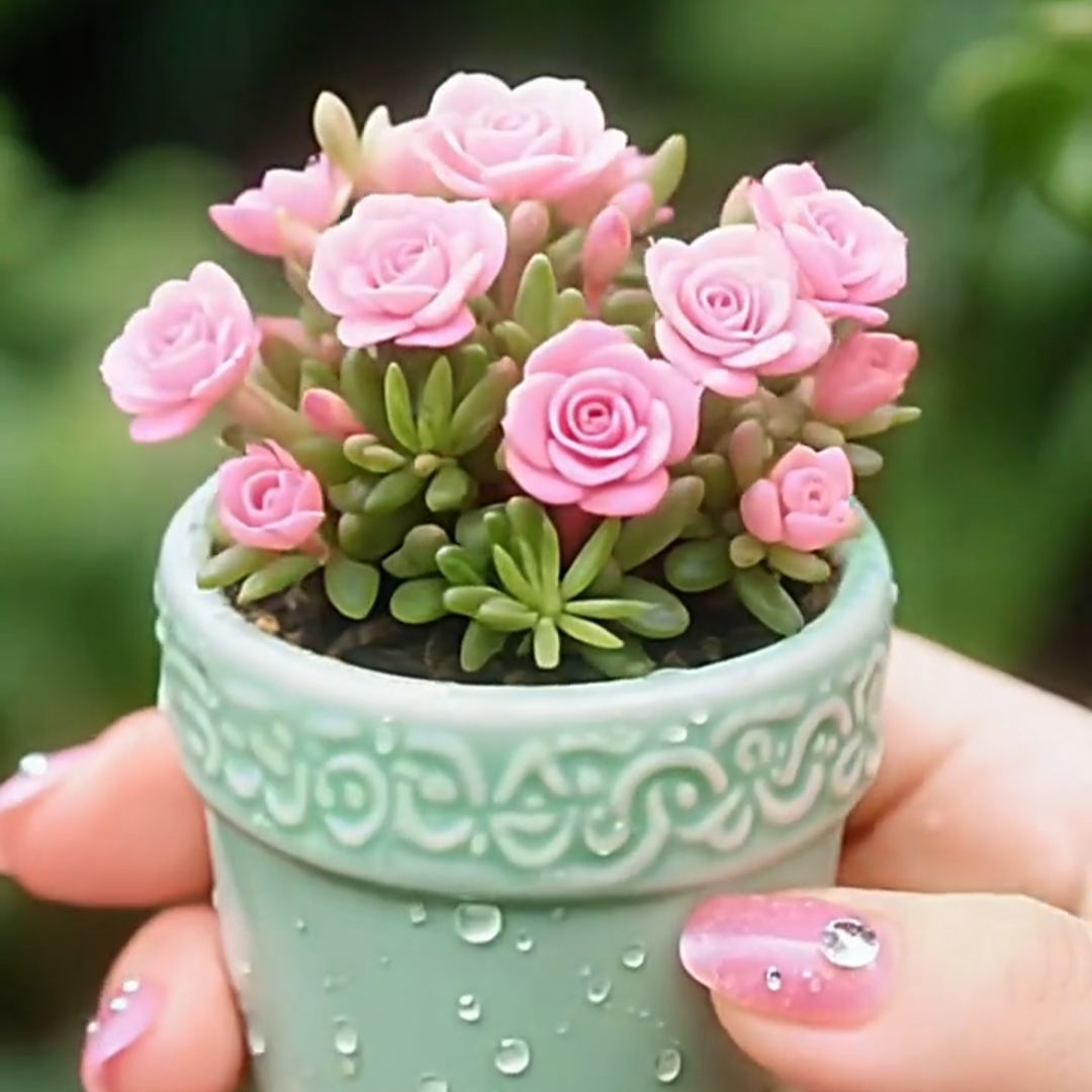 These charming little succulents bloom like tiny roses — so lifelike, they feel like a fairytale. With their vivid colors and effortless care, they bring a touch of magic to any room.