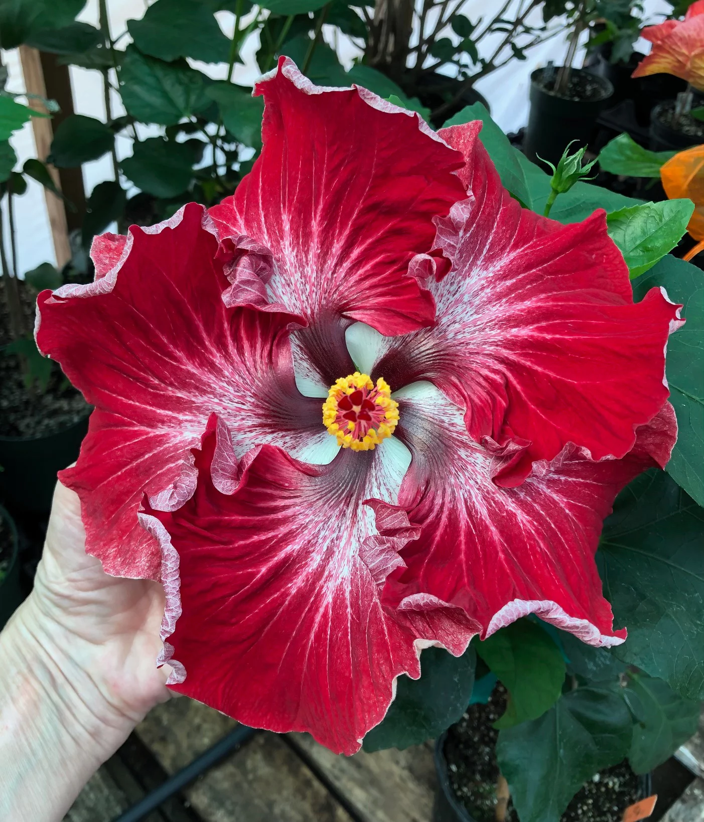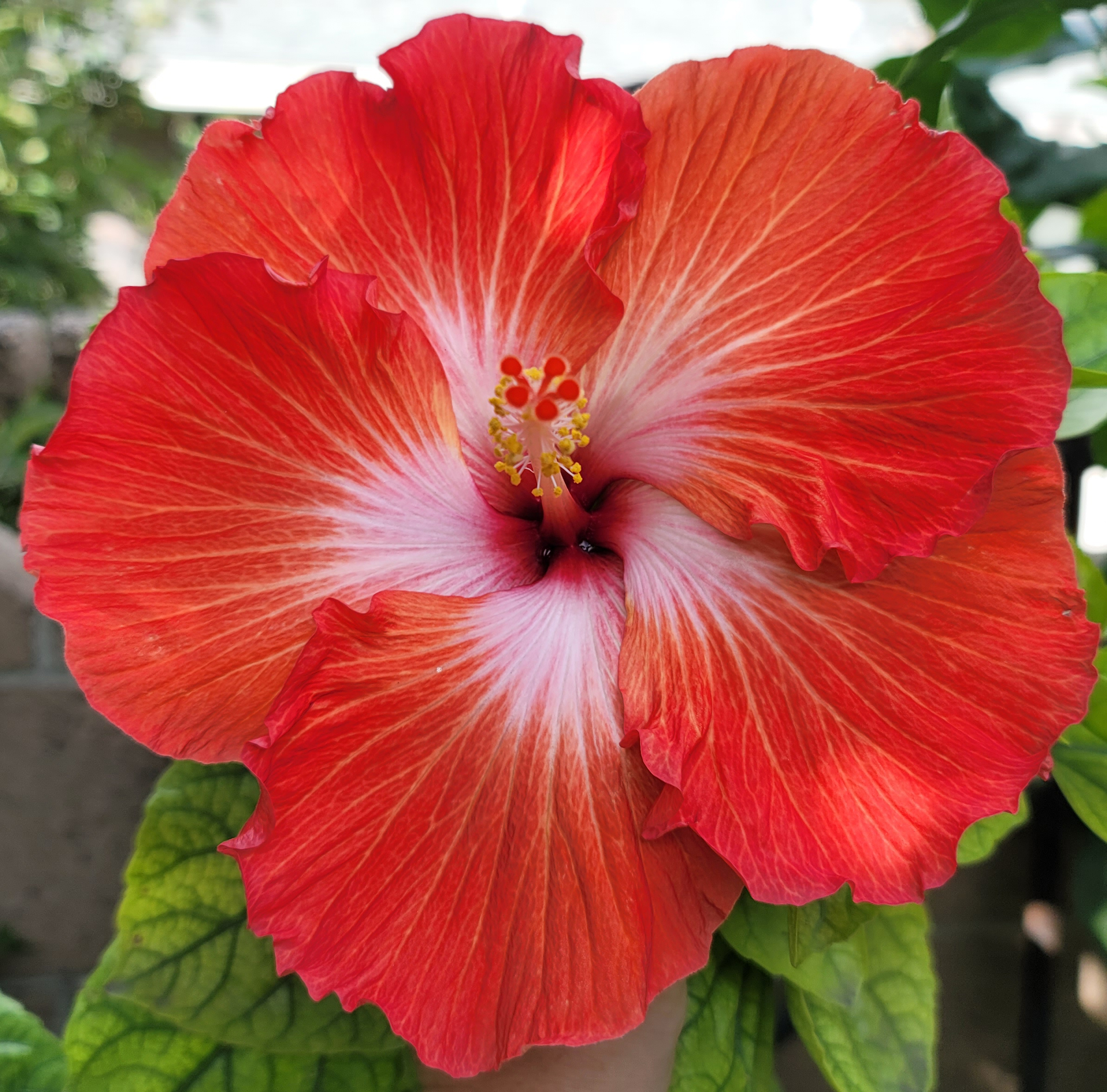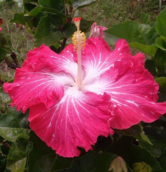 The leaves are deeply lobed and have a rich, velvety texture, adding an exotic flair to any garden or landscape. This variety of hibiscus is valued for its dramatic appearance and ability to thrive in both garden beds and containers. With proper care and sunlight, Dragon's Breath Hibiscus can grow into a stunning focal point, attracting attention with its intense colors and unique beauty.